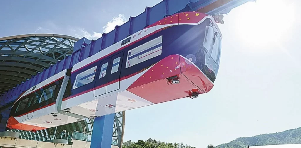 A diferencia de la mayoría de las líneas de levitación magnética existentes, este tren aéreo suspendido opera a unos 10