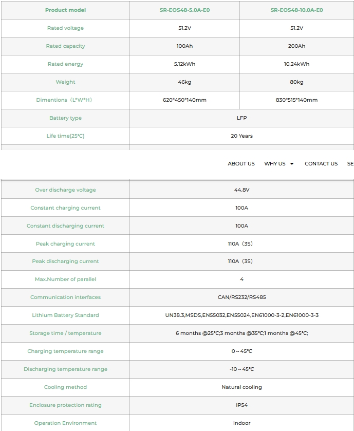 La batería de almacenamiento de energía solar Power Wall es una batería de alta capacidad diseñada para almacenar la energía generada por paneles solares. Con un rango de voltaje de 48 V a 51,2 V y opciones de almacenamiento de 100 Ah y 200 Ah, proporciona energía de respaldo confiable y puede reducir la dependencia de la red eléctrica. Su tamaño compacto y larga vida útil la convierten en una solución eficiente y sostenible para uso doméstico o comercial. Maximice sus ahorros de energía solar con nuestra batería de almacenamiento de energía solar Power Wall. Disponible en 48 V y 51,2 V, y con opciones de capacidad de 100 Ah y 200 Ah, nuestras baterías proporcionan un almacenamiento confiable y eficiente para su energía renovable.